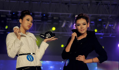 中國鞋網(wǎng)6月8日訊, 6月7日晚,在萬和豪生大酒店三樓國際廳,奧康集團(tuán)把第14屆全球旅游小姐國際大賽中國總決賽晉級賽“搬”到溫州,由32名參賽佳麗演繹奧康、康龍、紅火鳥的2010-2011年秋冬鞋款時尚秀。選手們用走秀的方式演繹溫州鞋的魅力,以爭奪“最佳才藝獎”、“最佳上鏡獎”、 “最佳魅力鞋秀獎”等多個獎項。