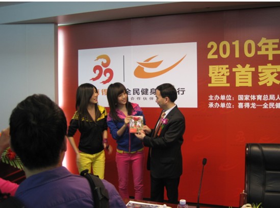 圖為:by2組合參加喜得龍2010“全民健身萬里行”新聞發(fā)布會
