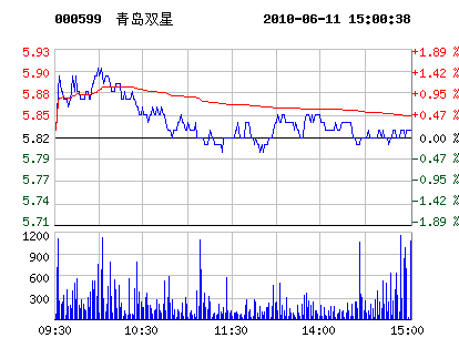 | 青島雙星代碼:000599.sz | 5.830.01 0.17%2010-06-11 15:00:37 | 昨收:5.82 今開:5.83 成交:53,090最高:5.92 最低:5.80 均價:5.85 市盈率:11.96流通:5.25億 市值:30.60億元 換手:1.01% |