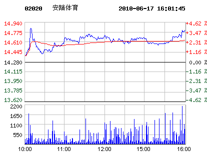 6月17日安踏體育股票行情走勢