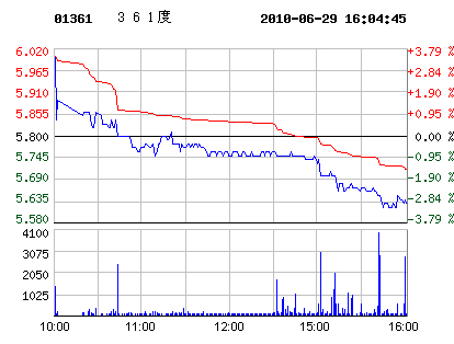 6月29日361度股票行情走勢