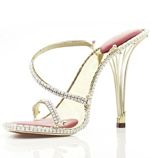 這雙高跟鞋是由英國設計師克里斯托弗·邁克爾·謝麗斯(Christopher Michael Shellis)設計,每一雙都由手工純金打造,并鑲嵌了2200顆完美切割的鉆石,總重量達30克拉。謝麗斯為這件作品花了三年時間。