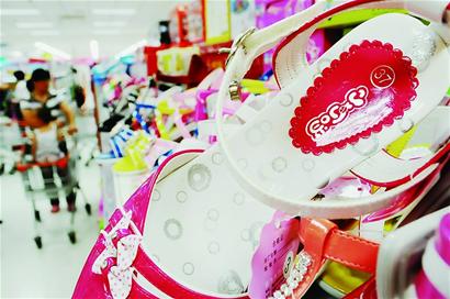 王女士正在讀初二的女兒不僅個子高,腳丫也不小,十三四歲的女孩要穿39碼的鞋子。上周末母女倆到貴和商廈買涼鞋,童鞋區的鞋子多數只到37碼,其中有兩款有特制的39碼和40碼,但一款上面有喜羊羊圖案,一款帶著可愛的蝴蝶結,母女倆都沒看中。童鞋區買不到女兒穿的,可成人不是跟太高,就是鞋面設計得太成人化。
