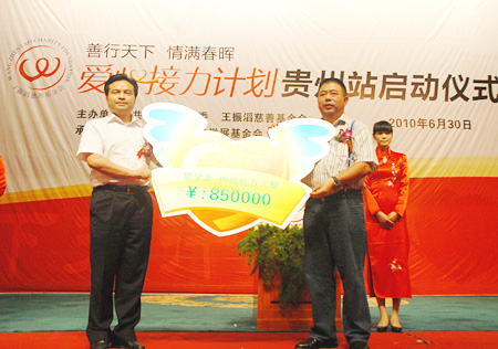 而王振滔慈善基金會選擇貴州作為2010年“愛心接力”首站,也是事出有因。今年上半年,云貴大地遭遇百年難遇的旱災,截止4月初,僅貴州受災總人口就達1868.9萬人,農作物受災面積163.9萬公頃,其中絕收46.02萬公頃。王振滔得知情況后心急如焚,通過其個人慈善基金會與貴州團省委進行聯系,表示愿為貴州高校學子“雪中送炭”。此后,許多清寒學子向貴州團省委提出申報,并由團省委和王振滔慈善基金會共同篩選確定資助對象。