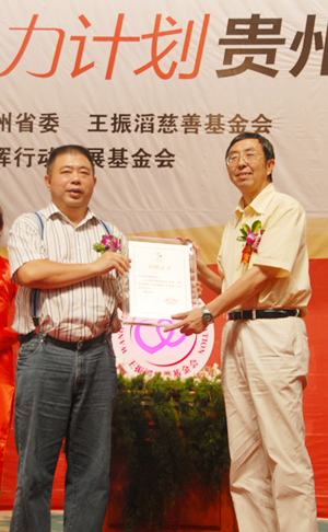 貴州省政協副主席謝曉堯給王振滔頒發捐助證書