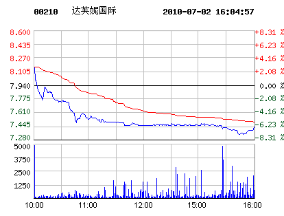 | 達(dá)芙妮國際代碼:00210.hk | 7.410.53 6.68%2010-07-02 16:08:59 | 昨收:7.94 今開:8.16 成交:107,653最高:8.16 最低:7.34 均價:7.48流通:16.38億 市值:121.37億 換手:0.01% |