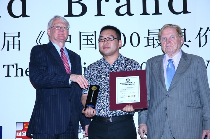 世界品牌實驗室主席、1999年諾貝爾經濟學獎得主羅伯特•蒙代爾教授(Robert Mundell)親臨現場,并為ABC董事長章利民先生頒發了“中國500最具價值品牌”的獎杯和獎牌。