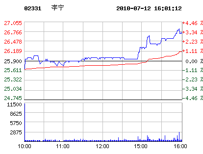 7月12日李寧股票行情走勢(shì)