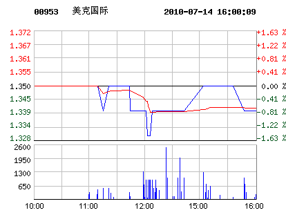 1.34 -0.01 -0.74% 2010-07-14 16:00:10 |
