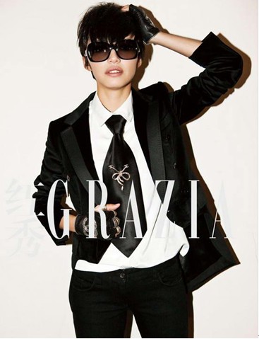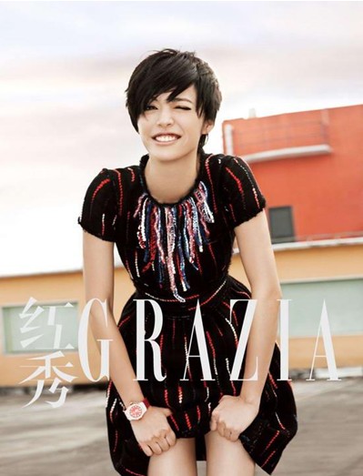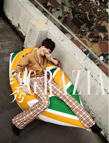 今年復古風當道,姚晨于某雜志拍攝時尚大片。據姚晨稱:“此中性創意源自模仿大師卡爾,我個人覺得應該把頭發搞成白色,再配上大蛤蟆鏡兒才會更象。”