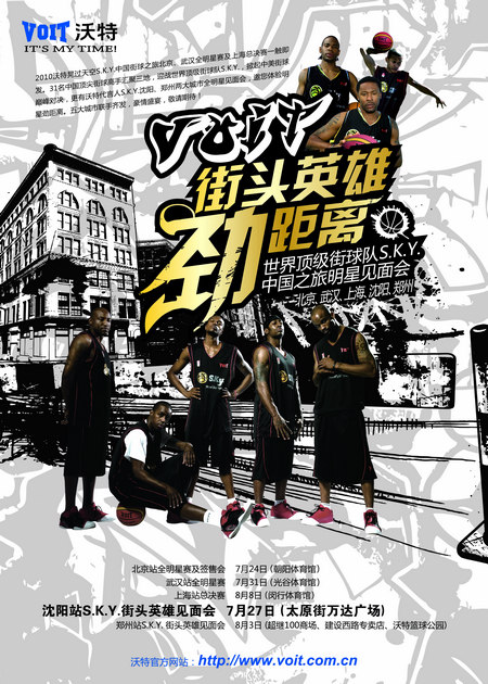 7月27日,沃特“街頭英雄”勁距離——世界頂級街球隊S.K.Y.中國之旅明星見面會將抵達沈陽,籃球界的JAMES、WADE、BOSH即將空降沈陽!在沈陽現場,8名S.K.Y.球星除了展示自己的精湛球藝,還將進行現場簽售并與球迷互動。