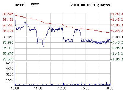 8月3日李寧股票行情走勢