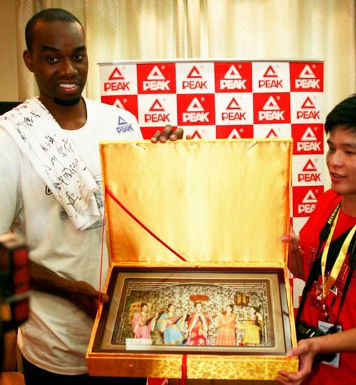 中國鞋網8月9日訊, 加內特剛走,原火箭隊球星蘭德里又來了!昨天下午,NBA球星蘭德里來到泉州,他先參觀了代言的匹克公司,隨后來到泉州七中,與學生們進行互動。在現場投籃秀中,蘭德里還投中了一個半場球。
