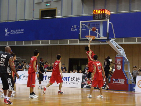 中國(guó)鞋網(wǎng)8月10日訊, 離開(kāi)武漢,2010沃特晃過(guò)天空中國(guó)街球之旅終于來(lái)到了最后一站—上海。上一場(chǎng)比賽,STREET CHINA原本擁有非常好的機(jī)會(huì)打敗S.K.Y.,尤其是第三節(jié),依靠BILLY的出色發(fā)揮,曾一度將兩隊(duì)的比分縮小到兩分,可惜最后時(shí)刻,球員們的年輕急躁讓S.K.Y.屢次站上罰球線(xiàn),最終輸?shù)袅吮荣。而就在上海總決賽開(kāi)始前3天,萬(wàn)眾期待卻又因護(hù)照丟失無(wú)法參加北京和武漢站比賽的“扣籃神話(huà)”Mr.720卻悄然抵滬,在賽事組委會(huì)的多方努力下,Mr.720在美國(guó)火速辦理了入境手續(xù),參加沃特晃過(guò)天空上海總決賽。
