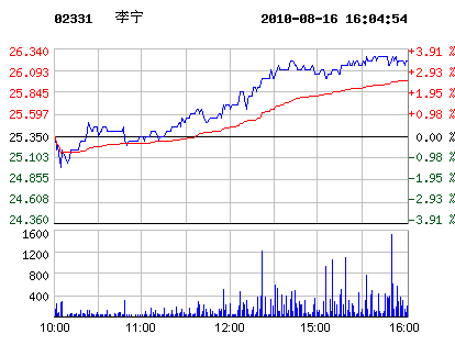 8月16日李寧股票行情走勢