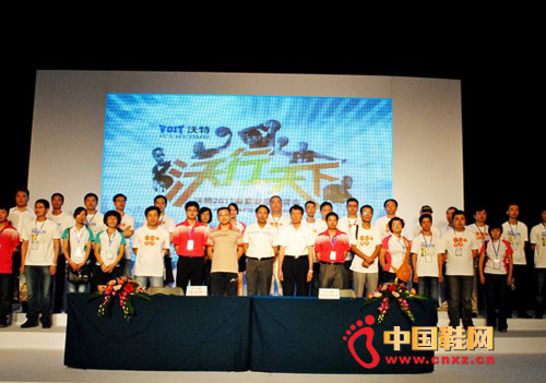 中國鞋網8月21日訊,在這個熱情似火的盛夏里,8月18日,美麗的鷺島迎來了一場盛會。來自全國各地的嘉賓及經銷商團隊,集聚廈門會展中心,隆重舉辦“沃行天下——沃特2011春夏新品訂貨會暨全國超級街球選拔賽啟動儀式”。