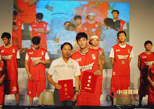 本屆訂貨會最大的亮點在于,沃特簽約本土明星及“街頭英雄”全國超級街球選拔賽活動的啟動儀式。據悉,沃特簽約世界頂級街球隊美國s.k.y.之后,由此掀起了“以活動帶傳播、傳播帶銷售、銷售帶品牌”的新一輪品牌營銷運動。由沃特冠名的“2010沃特晃過天空s.k.y.中國街球之旅活動”于今年4月正式拉開序幕,歷時4個月之久,橫跨全國五大中心城市,于8月8日順利落下帷幕。而最終產生的八名本土明星,應邀出席訂貨會,參加了與沃特集團的簽約儀式。會上,八位Street China在一段誕生視頻的播放下,依次出場,一展明星風采。隨后,沃特集團董事長蔡金輝先生與八位Street China,一起舉行現場的簽約儀式。儀式上蔡董表示,中國八位本土明星代表著中國街球的最好水平,沃特一直以實際行動推動中國街球的發展,這次能聘請八位Street China為形象代言,就在于借助他們的力量去推廣街球文化,為中國街球的發展貢獻力量。