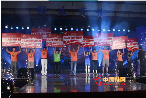 中國鞋網8月26日訊,隨著一段動感的開場舞,“因為有你”貴人鳥2011春夏新品訂貨會慶功晚會暨十佳經銷商/十大明星店頒獎盛典徐徐拉開帷幕。來自全國近3000位代理商、加盟商朋友一起與總部員工共享了此次盛會。