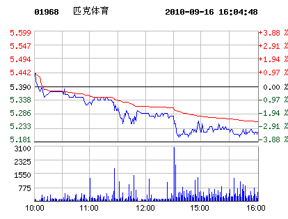 9月16日匹克體育股票行情走勢