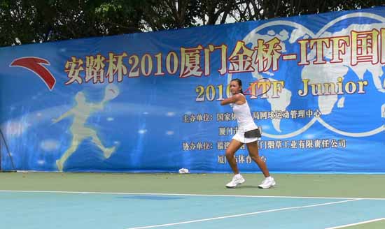 中國鞋網9月24日訊, 2010年9月21日,由安踏支持,中國網球協會舉辦的“安踏杯”2010廈門金橋-ITF國際青少年網球巡回賽正式開打。來自10余個國家的100多名網球小將云集于廈門體育中心,一較高下。該賽事代表國際青少年網球發展的最高水平,為世界網壇的未來之星們架起了通往網壇巔峰的橋梁。