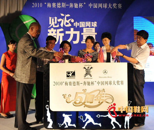 中國網球大獎賽發布會啟動儀式,右三為德爾惠代表王玲女士