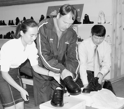 身高2.2米的米哈廖夫安德烈,穿58碼的鞋,市場少有,一雙旅游鞋已經穿了8年,想換鞋可是買不到合腳的鞋。俄羅斯濱海邊疆區政府與中俄烏蘇里斯克經貿合作區取得聯系,希望中國廠家幫助生產58碼皮鞋。浙江康奈集團是經貿合作區建設單位之一,康奈集團迅速組織技術力量特制了58碼大號鞋的鞋楦,指派高級技師制作了一單一棉兩雙皮鞋,運往俄羅斯烏蘇里斯克經貿合作區。俄羅斯烏蘇里斯克經貿合作區工作人員將新皮鞋送到米哈廖夫安德烈手中。穿上了新皮鞋的米哈廖夫安德烈高興不已,贊不絕口。康奈集團表示,今后每年都要給米哈廖夫安德烈特制幾雙大號鞋。