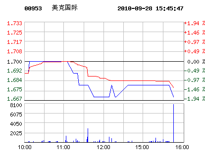 9月28日美克國際股票行情走勢