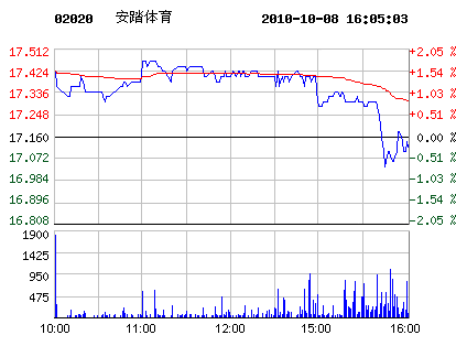 10月08日安踏體育股票行情走勢