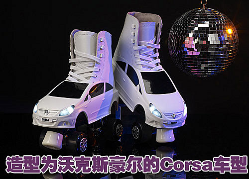 歐寶汽車去年曾推出一款Agila的高跟鞋,同樣同屬通用旗下的沃克斯豪爾也不干示弱,推出了這款以汽車外觀造型的溜冰鞋。其外觀造型為沃克斯豪爾的Corsa車型。