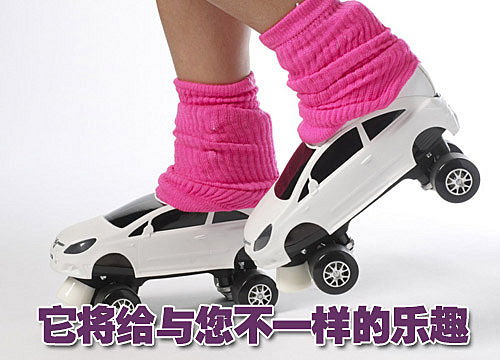中國鞋網10月12日訊, 輪滑鞋俗稱旱冰鞋也成溜冰鞋,早在1100年前獵人們為了能夠在冬天打獵,將骨頭安裝在長皮鞋底下,這可算是最早的溜冰鞋了。溜冰鞋成為我們孩童時代最有趣的玩耍工具,給我們的童年時代帶來了不少歡樂。不過您見過下面這些造型的溜冰鞋嗎?它可是擁有汽車模樣的溜冰鞋。