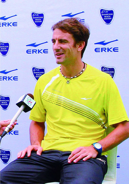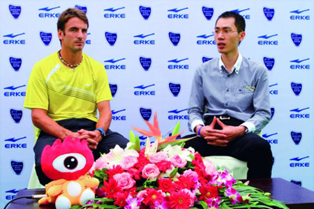 如今與鴻星爾克牽手之后,羅布雷多來到上海比賽,就更是有了一種在家門口作戰的感覺!吧虾碛幸涣鞯脑O施,所以到這里比賽一直非常愉快。現在我相信我在這里能夠得到更多的支持,因此我希望自己在這里的表現能夠更好一些,能夠打出自己的最好水平。”之所以能夠得到中國企業的贊助,與羅布雷多俊朗的外表有著不小的關系。鴻星爾克集團常務副總裁吳榮照表示,與羅布雷多合作,其中一個原因就是因為他很帥,外在形象很不錯。這些年,羅布雷多也為一些雜志拍攝過封面,這就不免讓人擔心,他是否會因為俊朗的外表不專注于打網球,而去做一些與時尚有關的工作。畢竟,羅布雷多曾經進入過世界前五,而現在排名已經落到了第42名。對此,羅布雷多明確予以否認,“網球和拍照是兩碼事。我自己還是把自己定位為一個網球運動員,而不是一個時尚明星。對于自己來說,最為重要的是保持身體的健康,保持一個很好的狀態,在比賽場上有一個好的表現。當然以前也做過拍照的事情,但是這是在不影響打球的情況下,是在業余時間做的,并不是說我想向時尚方面發展。”