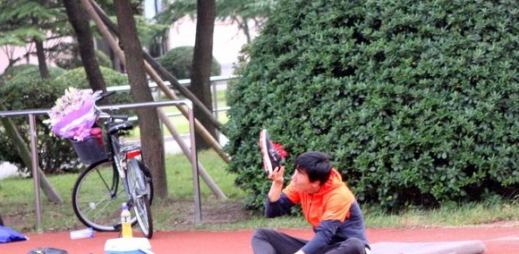 劉翔赤膊苦練備戰(zhàn)亞運查看自己的鞋