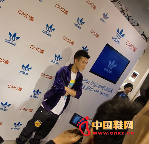 中國鞋網10月23日訊,淡出娛樂圈多時的陳冠希最近終于邁出了全面復出的第一步,近日,拍攝單曲《Mr.Sandman》MV。22日下午2點陳冠希Edison現身上海國際金融中心,慶祝Adidas新店開張。一身時尚鞋服的Edison還親自發布Mr. Sandman MV,并和幸運網友現場互動,現場氣氛相當熱烈。