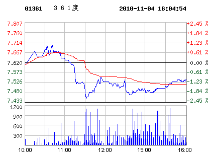 11月04日361度股票行情走勢(shì)