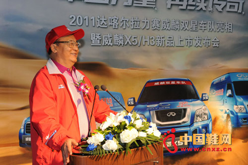 【中國鞋網】11月3日,“中國力量 再續傳奇——2011達喀爾拉力賽威麟雙星車隊亮相”活動在北京阿根廷莊園的方尖碑下隆重舉行,雙星集團總裁汪海、威麟雙星車隊車手盧寧軍、江耀桓、劉昆等悉數亮相。
