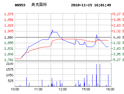 1.82 -0.06 -3.19% 2010-11-15 16:14:36 |