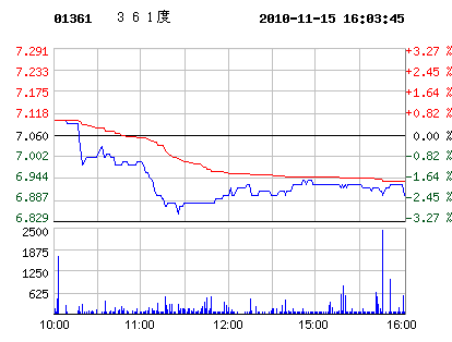 11月15日361度股票行情走勢