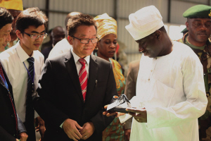 【中國鞋網-品牌動態】11月13日下午,尼日利亞總統喬納森乘坐直升飛機抵達哈杉非洲公司視察。喬納森對哈杉非洲公司一流的生產設備和高質量的皮鞋大加贊賞。