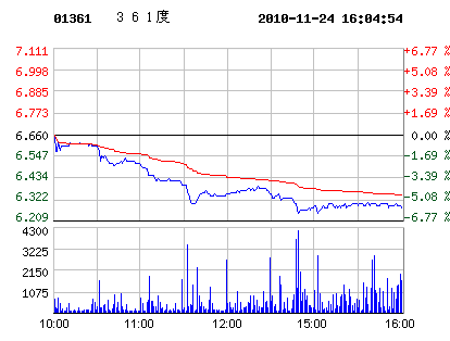 11月24日361度股票行情走勢