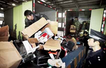 昨天下午,豐臺(tái)法院公開銷毀了這批假名牌運(yùn)動(dòng)鞋,共7324雙。據(jù)悉,這是本市法院首次公開大規(guī)模銷毀沒(méi)收的贓物。
