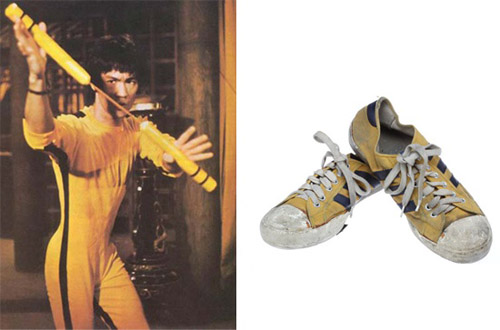 李小龍在《死亡游戲》里穿過的一雙黃色阿迪達斯帆布鞋,估價6,000 到8,000美元,最終拍出了12,500美元。影片拍攝期間,這雙鞋子的白色橡膠鞋頭上貼滿了黃色絕緣膠帶。這雙鞋子和那件連體緊身衣都是嘉禾集團捐贈的,該公司制作、發行了李小龍的多部影片。