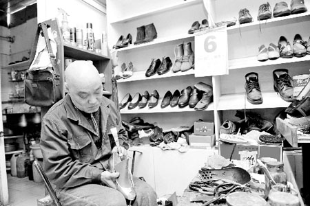 昨天下午,記者走進那窄窄的小店鋪時,潘師傅正低頭忙著給客人修帆布鞋。“像這種生意每天都有幾十個,老客戶小改改我都不收錢的。”