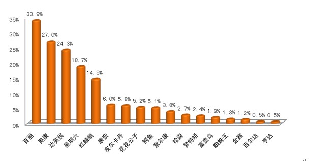 在消費者最喜歡的皮鞋品牌方面,百麗依然占據第一名的位置,排在其后的分別是奧康、達芙妮以及星期六。