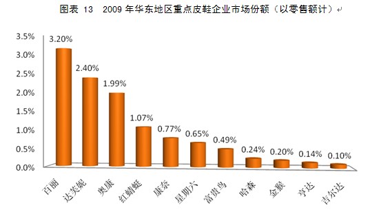 圖表 13 2009年華東地區重點皮鞋企業市場份額(以零售額計)