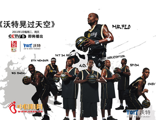 【中國(guó)鞋網(wǎng)-鞋業(yè)品牌新聞】 從1月4日開始,由沃特集團(tuán)、中央電視臺(tái)體育頻道以及上海晃動(dòng)體育文化傳播有限公司聯(lián)合打造的2011年開年大戲——《沃特晃過天空》在中國(guó)最強(qiáng)勢(shì)體育電視平臺(tái)CCTV5震撼上演。此專題片為中國(guó)電視史上第一檔以街頭籃球?yàn)橹黝}的電視真人秀節(jié)目,旨在打造成為中國(guó)街頭籃球愛好者的圣經(jīng),堪比美國(guó)當(dāng)年那套讓全世界街球迷們都趨之若鶩、為之瘋狂的And1 Mixtape系列DVD。