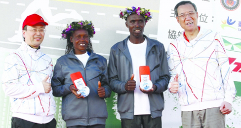 特步集團高級副總裁葉齊(左一)為冠軍授獎