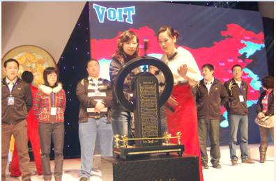 2010年,是沃特品牌虎虎生威的一年;仡櫼荒陙碜哌^的點(diǎn)點(diǎn)滴滴,蔡金輝董事長在開場致辭中一針見血地指出:未來兩年內(nèi),沃特將逐步進(jìn)入“蓄勢、騰飛、制勝”的發(fā)展階段。而這一切的努力和奮斗與各位經(jīng)銷商、合作伙伴們的支持是分不開的。沃特籃球軍團(tuán)正在日益壯大,沃特相信所有的合作伙伴,他們就是最勇猛的沃特英雄。整個(gè)訂貨會(huì)當(dāng)天的開場儀式極其盛大,沃特擂鼓手們以“鳴戰(zhàn)鼓,迎英雄”的方式歡迎來自各地的沃特營銷精英,與此同時(shí),各地沃特英雄代表走上舞臺(tái)中央向大家揮手致意,并轉(zhuǎn)動(dòng)“沃特專業(yè)籃球運(yùn)動(dòng)航母”的艦舵,開啟本市場區(qū)域的網(wǎng)點(diǎn)擴(kuò)張版塊,其他合作伙伴們則高喊2011沃勢齊發(fā)的口號(hào)……盛大的氣勢和鼓舞人心的節(jié)奏堅(jiān)定了每一個(gè)沃特人決勝2011的信心。