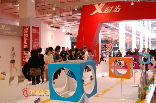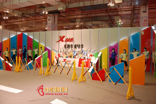 展館中心布置成跑道,以此響應“愛跑步,愛特步“的口號