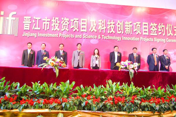 國內最大的正品鞋類B2C拍鞋網做為泉州市政府重點扶持的高科技術標桿企業,受邀組團參展本屆晉江鞋博會。現場共促成簽約38個項目,其中產業項目33個,科技創新類5個,總投資達151.75億元人民幣,項目總數和總投資額均創新高。拍鞋網等電子商務企業受到政府的高度重視,本次簽約項目里的互聯網相關產業達到了30個億 。