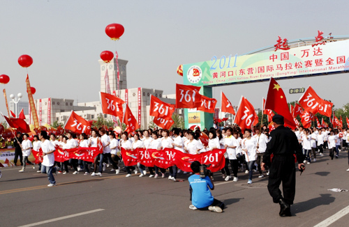 據悉,黃河口(東營)國際馬拉松賽已成功舉辦三屆,通過不斷提升的競賽水平、廣泛的群眾參與基礎和豐富的配套活法,逐步成為中國最具影響力的馬拉松賽事之一,并于2011年升級成為全國五大馬拉松積分賽之一。賽事的舉辦地東營是一座美麗的海濱城市,萬里黃河入海的地方。東營市政府將綠色觀念引入了城市馬拉松賽事,打造自然、健康馬拉松賽事,讓參賽選手與“綠色”一同奔跑。來自64個國家和地區的近20000名運動員共同參加了本次比賽。